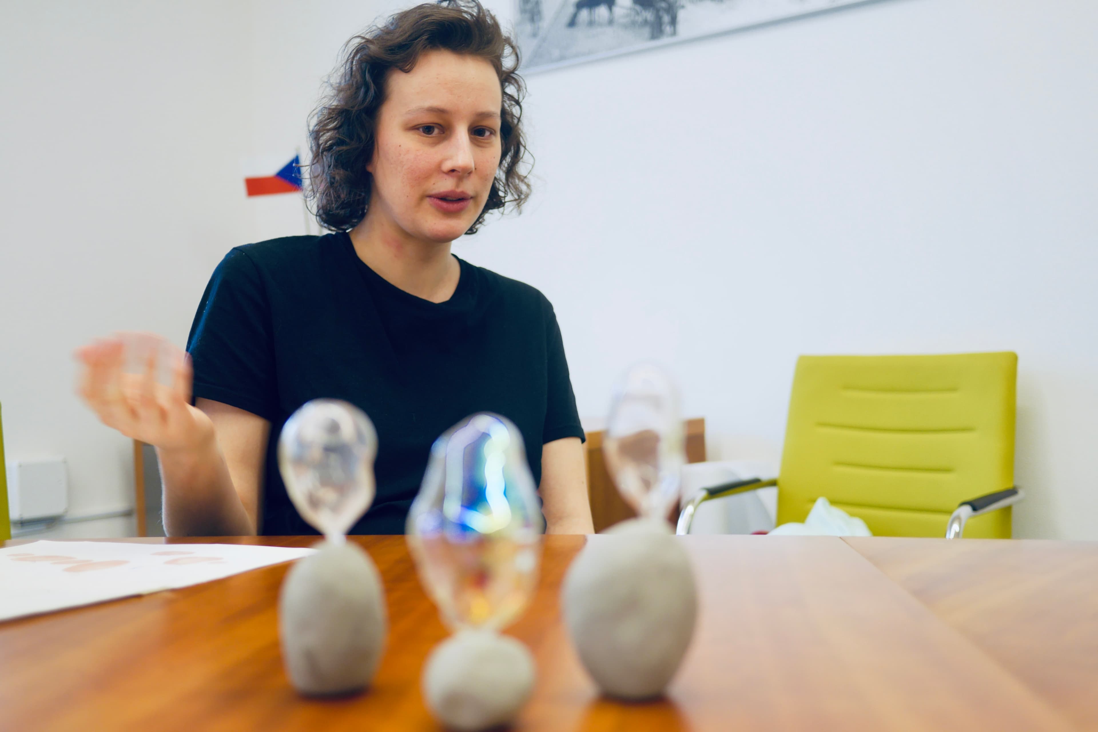 „Zásadní pro mě bylo, že město v zadání vnímalo místo nejen jako připomenutí události ztráty dítěte, ale také jako možnost smíření a naděje pro lidi, kteří tím prošli. Je to těžké téma, ale přišlo mi zajímavé i to pozitivní téma naděje. To byl zásadní moment. Snažila jsem se najít nějaký prvek, který by uměl zreflektovat tento kontrast mezi tragickou událostí a nadějným momentem. Přemýšlela jsem, co by to mohlo zhmotnit, až jsem došla k mýdlovým bublinám. Navíc je tam dětský princip, dětský svět. Mýdlová bublina je křehká, zranitelná, ale je tam naděje a lehkost,“ popisuje autorka vznik návrhu na boskovický památník.